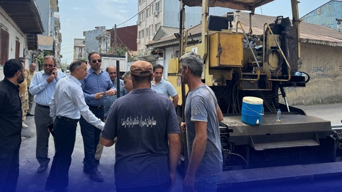 بازدید شهردار رشت از عملیات اجرای آسفالت کوچه های شهید نظری و شهید پور رضا در محدوده بلوار شهید مدرس